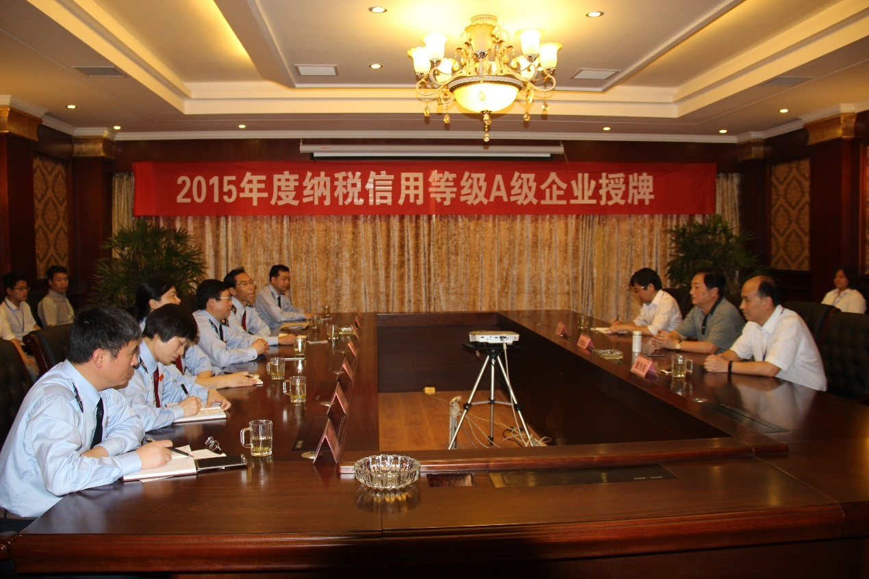 鹰潭市国税局吴晨阳局长代表省税务部门对B体育亚洲官方网站智慧获评2015年度纳税信用等级A级企业表示祝贺。他说,此次活动针对江西省2500家企业进行评选,前40名被评选为A级纳税人,B体育亚洲官方网站智慧多年依法经营、诚信纳税获得此荣誉实至名归;税务部门将更加完善税务体系,落实“降低企业成本,优化专项活动”政策,更好更优地服务企业。B体育亚洲官方网站集团董事长李建林在会谈时表示,非常感谢税务部门对BSPORT多年的鼓励与帮助;纳税是企业应尽的义务,诚信是企业的立足之本,BSPORT将再接再厉做好本职工作,紧抓创新转型,带动地方经济,全面支持政府的各项工作。