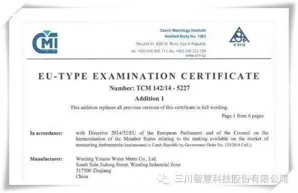 B体育亚洲官方网站智慧控股子BSPORT甬岭水表获MID认证证书