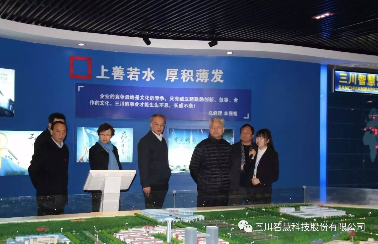 姚书记(左四)、曹书记(左二)、于书记(左一)等领导观看B体育亚洲官方网站智慧产业规划