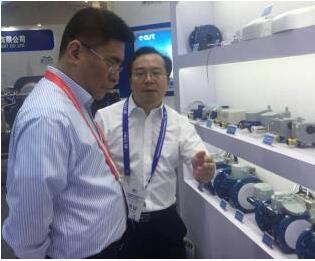为您服务:营销中心副总裁亲自为北京自来水集团总经理高踪阳至展区介绍产品。